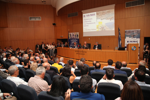 Στο χαιρετισμό του ο Περιφεριάρχης Κρήτης κ. Σταύρος Αρναουτάκης τόνισε τα στοιχεία εκείνα που διαμορφώνουν συνθήκες προσέλκυσης επενδύσεων στο νησί, αφού η οικονομία της Κρήτης κυρίως λόγω του Τουρισμού αλλά και των μεγάλων έργων που έχουν αρχίσει να υλοποιούνται διαθέτει ισχυρές προοπτικές.