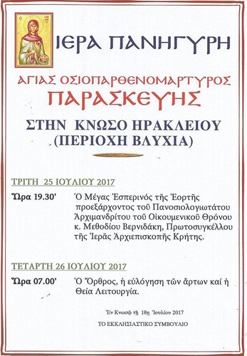 ΙΕΡΑ ΠΑΝΗΓΥΡΙΣ ΑΓΙΑΣ ΟΣΙΟΠΑΡΘΕΝΟΜΑΡΤΥΡΟΣ ΠΑΡΑΣΚΕΥΗΣ