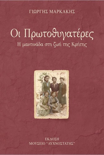 Την Τρίτη 7 Φεβρουαρίου και ώρα 18.30 στο αμφιθέατρο του Μουσείου Μπενάκη (οδός Πειραιώς 138, στάση μετρό Κεραμεικός- Αθήνα), το Μουσείο Παραδοσιακής Ζωής Κρήτης «ΛΥΧΝΟΣΤΑΤΗΣ» παρουσιάζει, υπό την αιγίδα της Περιφέρειας Κρήτης, το νέο βιβλίο του Γιώργη Μαρκάκη «Πρωτοθυγατέρες – η μαντινάδα στη ζωή της Κρήτης» (εκδόσεις Μουσείου «ΛΥΧΝΟΣΤΑΤΗΣ», σελίδες 344).