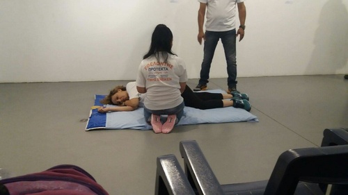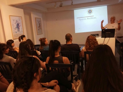 Ο Νίκος Μυρωδιάς, εκπαιδευτής, συνταξιούχος ΕΚΑΒ, ανέλαβε με συμπαραστάτες - βοηθούς την εθελόντρια Μιχαέλα Καραγιωργάκη και τη Κατερίνα Σπυριδάκη, να μας εκπαιδεύσει.