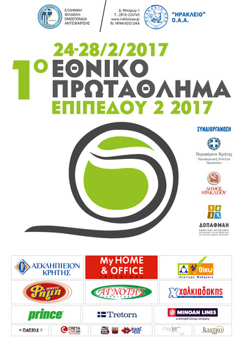 Την Παρασκευή 24 Φεβρουαρίου 2017 ξεκινάει το 1ο Εθνικό Πρωτάθλημα Τένις 2017 για αγόρια- κορίτσια 12,14 και 16 ετών, που διοργανώνει το «ΗΡΑΚΛΕΙΟ» Ο.Α.Α. με την στήριξη της Περιφερειακής Ενότητας Ηρακλείου, τον Δήμο Ηρακλείου και τον ΔΟΠΑΦΜΗ.