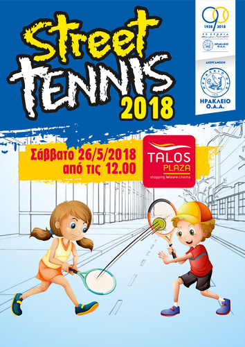 O «ΗΡΑΚΛΕΙΟ» Ο.Α.Α. κλείνει 90 χρόνια ζωής και για να γιορτάσει τα γενέθλια του προχωρά σε μια σειρά από δράσεις…μία από αυτές είναι και το Street Tennis event που διοργανώνεται σε συνεργασία με εμπορικό κέντρο Talos Plaza. Το Σάββατο 26 Μάιου 2018 από τις 12.00 o υπέροχος χώρος του Talos θα μετατραπεί σε γήπεδο τένις και θα υποδεχτεί μικρούς τενίστες.