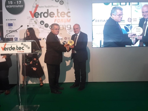 Σε ειδική τελετή στη διάρκεια της 3ης Διεθνούς Έκθεσης verde.tec για τις τεχνολογίες περιβάλλοντος, που πραγματοποιήθηκε 15-17 Φεβρουαρίου στην Αθήνα, απέσπασε το GREEK GREEN AWARDS 2019 στην κατηγορία «Βέλτιστες Πρακτικές Οργανισμών και φορέων της τοπικής αυτοδιοίκησης για το περιβάλλον, την αειφόρα και την κυκλική οικονομία».
