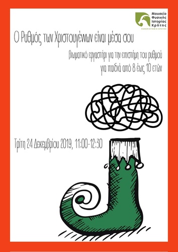 Το Μουσείο Φυσικής Ιστορίας Κρήτης – Πανεπιστήμιο Κρήτης, η Kατερίνα Κανδυλάκη και η Βίκη Χρηστάκη σάς προσκαλούν σε ένα βιωματικό εργαστήρι για την επιστήμη του ρυθμού, την Τρίτη 24 Δεκεμβρίου 2019, 11:00-12:30.