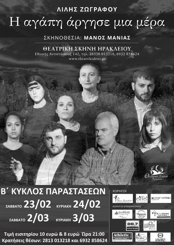 Θεατρική Σκηνή Ηρακλείου Κρήτης με το έργο «Η αγάπη άργησε μια μέρα» της Λιλής Ζωγράφου