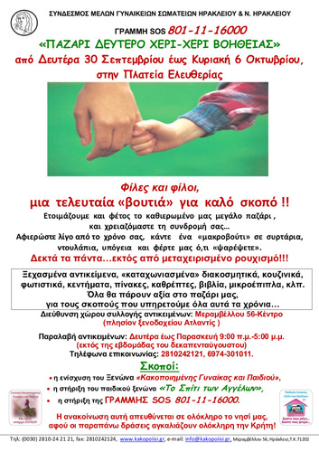 «ΠΑΖΑΡΙ ΔΕΥΤΕΡΟ ΧΕΡΙ-ΧΕΡΙ ΒΟΗΘΕΙΑΣ»
