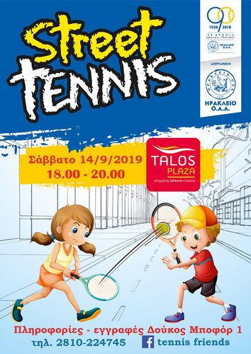 Το Σάββατο 14 Σεπτεμβρίου 2019, από τις 6 το απόγευμα, στον υπέροχο χώρο του Talos Plaza θα δημιουργηθούν  γήπεδα με μικρά φιλέ, όπου τα παιδιά που θα βρεθούν εκεί θα διδαχθούν τα μυστικά του τένις από την έμπειρη ομάδα προπονητών του «ΗΡΑΚΛΕΙΟ» Ο.Α.Α.