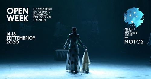 Η Ανώτερη Σχολή Δραματικής Τέχνης «Νότος» και το Θέατρο «Κάτω» πραγματοποιούν από τη Δευτέρα 14 μέχρι την Παρασκευή 18 Σεπτεμβρίου στους χώρους της Σχολής μια ΔΩΡΕΑΝ ΕΒΔΟΜΑΔΑ ΓΝΩΡΙΜΙΑΣ για την παρουσίαση των Εργαστηρίων και των Σεμιναρίων 2020-2021, που αφορούν Παιδιά, Εφήβους και Ενήλικες.