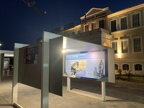 Έτσι, τις βραδινές ώρες με περισσότερη δροσιά, μπροστά από το ιστορικό κτήριο της Περιφερειακής Ενότητας Ρεθύμνου, οι επισκέπτες μπορούν πλέον να δουν με άνεση τα κείμενα, τις εικόνες και τις διαδραστικές εφαρμογές μέσω QR codes για τη συμμετοχή της Κρήτης στην Ελληνική Επανάσταση μέσα στο πλαίσιο των εξελίξεων στον ηπειρωτικό ελλαδικό χώρο και των ευρύτερων συνθηκών που επικρατούν στην Ευρώπη και τον κόσμο κατά την εποχή εκείνη.