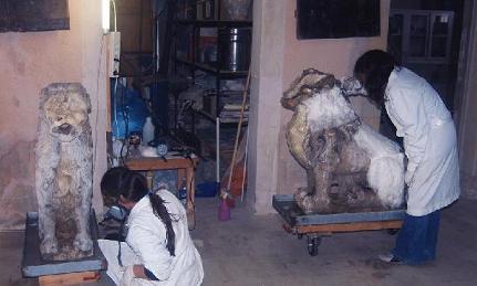 Η συντήρηση ακολούθησε την προβλεπόμενη από την μελέτη μεθοδολογία και περιελάμβανε εργασίες απολύμανσης, καθαρισμού και στερέωσης των πέτρινων γλυπτών και αναγλύφων κυρίως με αντιστρέψιμες μεθόδους, με την επίβλεψη της Ι. Σταμιανού από την Δ/ση Συντήρησης του ΥΠ.ΠΟ.