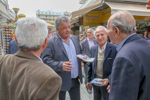 Βόλτα για ανταλλαγή ευχών με καταστηματάρχες και πολίτες πραγματοποίησε σήμερα στο κέντρο του Ηρακλείου ο υποψήφιος δήμαρχος και επικεφαλής της Δημοτικής Κίνησης «Ηράκλειο-Ενεργοί Πολίτες», Ηλία Λυγερός, συνοδευόμενος από υποψήφιους δημοτικούς συμβούλους.