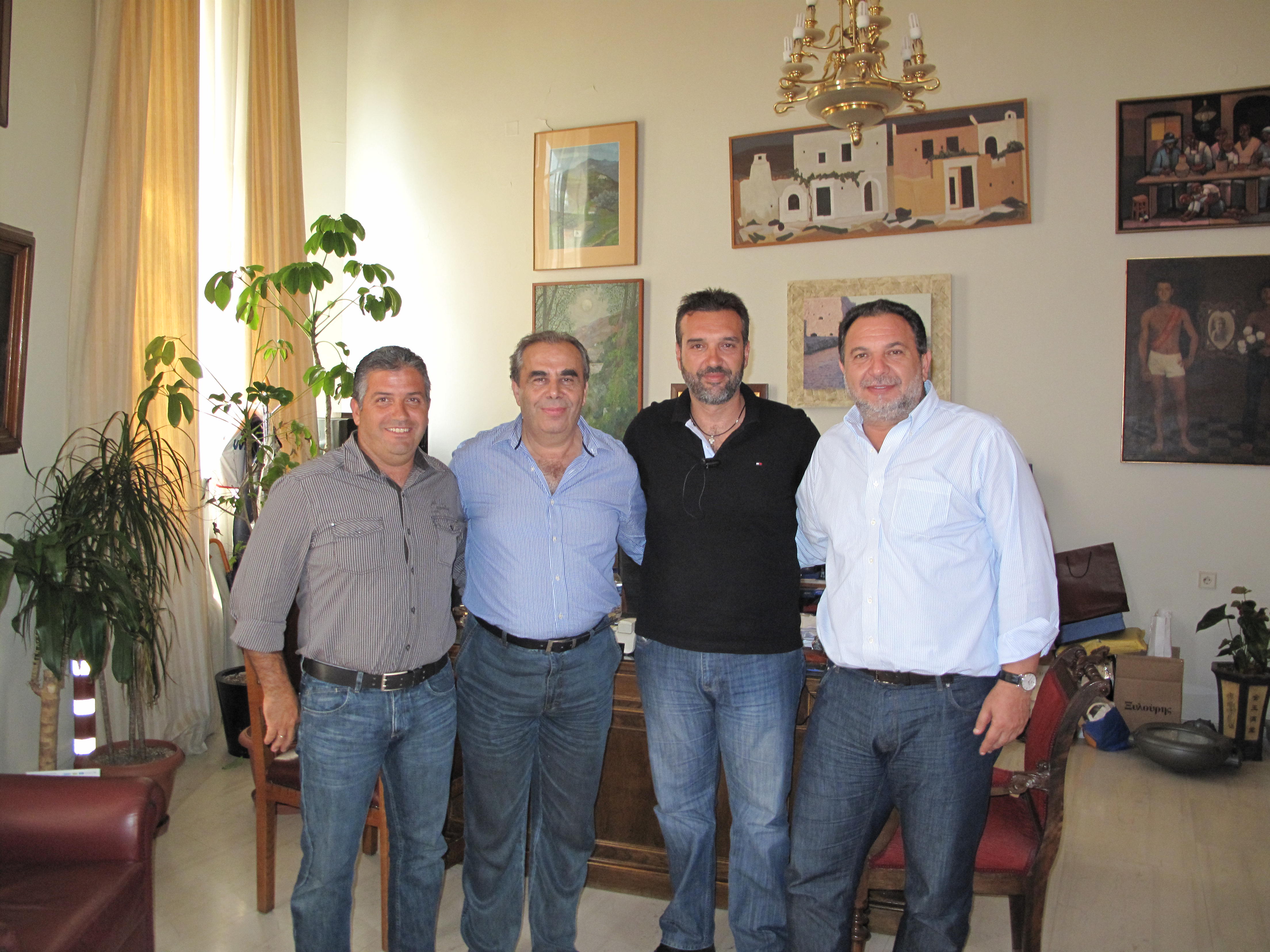 Στο Δημαρχείο Ηρακλείου συναντήθηκε σήμερα ο Δήμαρχος κ. Γιάννης Κουράκης με τον Δήμαρχο Αλικαρνασσού κ. Βαγγέλη Σισαμάκη, τον Σμαραγδάκη Γιάννη, Πρόεδρο της Ομάδας του Ηροδότου και τον Μιχάλη Μωραίτη Πρόεδρο του Αθλητικού Οργανισμού Νέας Αλικαρνασσού και Αντιπρόεδρο του Ηροδότου.