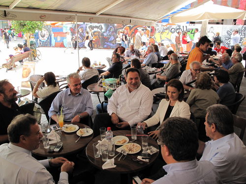 Ο δήμαρχος Ηρακλείου κ.Γιάννης Κουράκης σε καφέ με την Υπουργό Αγροτικής Ανάπτυξης και Τροφίμων κ.Κατερίνα Μπατζελή, τον Νομάρχη Αθηνών κ.Γιάννη Σγουρό, τον Δήμαρχο Πάτρας κ.Ανδρέα Φούρα και τον Δήμαρχο Καβάλας κ.Σιμιτσή Κων/νο.