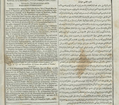 Ο Μωχάμετ Άλη, Αντιβασιλιάς της Αιγύπτου στον οποίο παραχωρήθηκε το νησί, ίδρυσε δύο τυπογραφία ένα στα Χανιά και ένα στο Ηράκλειο στα οποία τυπώνεται η εφημερίδα που αναφέραμε.