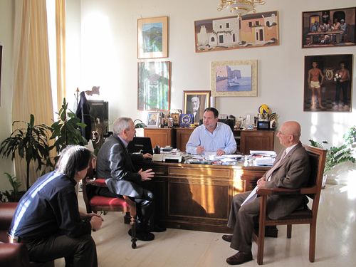 Συνεργασία είχε σήμερα ο Δήμαρχος Ηρακλείου κ. Γιάννης Κουράκης με τον Πρόεδρο της Δημοτικής Κοινωφελούς Επιχείρησης Πολιτισμού κ. Ματζαπετάκη Νίκο, τον Καλλιτεχνικό Δ/ντή του Δήμου κ. Αντωνάκη Γιώργο και τον Αρχιμουσικό Τζωρτζάκη Γιάννη, όπου οριστικοποιήθηκε το Πρόγραμμα των εκδηλώσεων Χριστούγεννα - Πρωτοχρονιά 2012.
