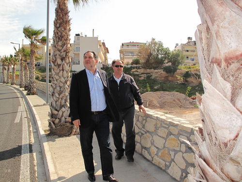 Στη συνέχεια ο Δήμαρχος Ηρακλείου μαζί με τον Πρόεδρο της Δημοτικής Κοινότητας επισκέφτηκαν και την οδό Σεφέρη, όπου είδαν από κοντά το πρόβλημα που έχει δημιουργηθεί με την κατασκευή την Παραλιακής και το κλείσιμο της οδού.