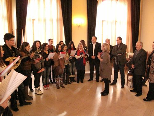 Σε μια γιορτινή ατμόσφαιρα ο Δήμαρχος Ηρακλείου κ. Γιάννης Κουράκης με τον Πρόεδρο του Δημοτικού Συμβουλίου κ. Δημήτρη Καρατζάνη και Αντιδημάρχους, αντάλλαξε ευχές και δώρα με πολίτες , μαθητές σχολείων , εργαζόμενους , ΚΑΠΗ, τη χορωδία της 126 ΣΜ και φορείς που επισκέφτηκαν το Δημαρχείο.