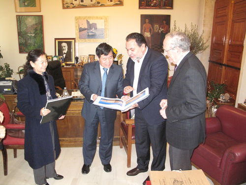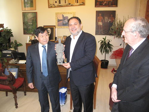 Ο Πρέσβης του πρόσφερε ένα αγαλματίδιο κινέζου στρατιώτη της εποχής του μεγάλου Αλεξάνδρου και ένα ημερολόγιο με εντυπωσιακά κινέζικα τοπία. Η συνάντηση έκλεισε στην αίθουσα του Δημοτικού Συμβουλίου, η οποία τον εντυπωσίασε.