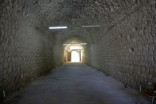 Η κεντρική θολωτή διάβαση διαπερνά κάθετα το τείχος. Οι παράπλευρες αίθουσες χρησίμευαν ως χώροι αποθήκευσης όπλων και πολεμοφοδίων καθώς και προσωρινής διαμονής της φρουράς της πύλης. Επικοινωνούσαν με τον κεντρικό διάδρομο μέσω τοξωτών ανοιγμάτων έχοντας η κάθε μια ανεξάρτητη είσοδο από την πλευρά της πόλης. Για τον αερισμό των αιθουσών έχουν κατασκευαστεί στην οροφή αεραγωγοί των οποίων η απόληξη βρίσκεται στο πλάτωμα.