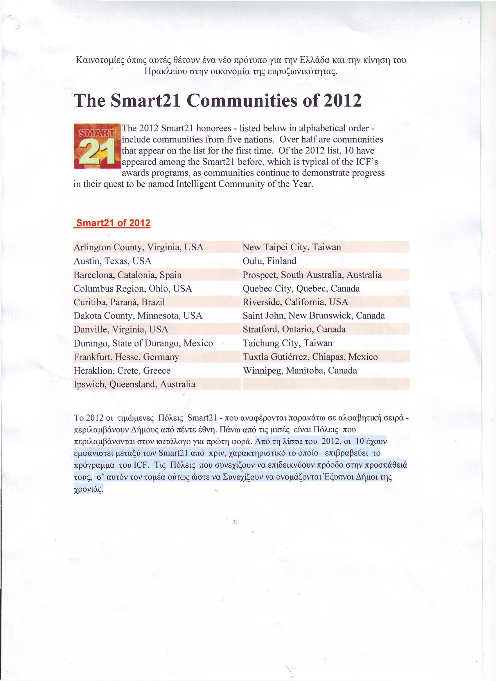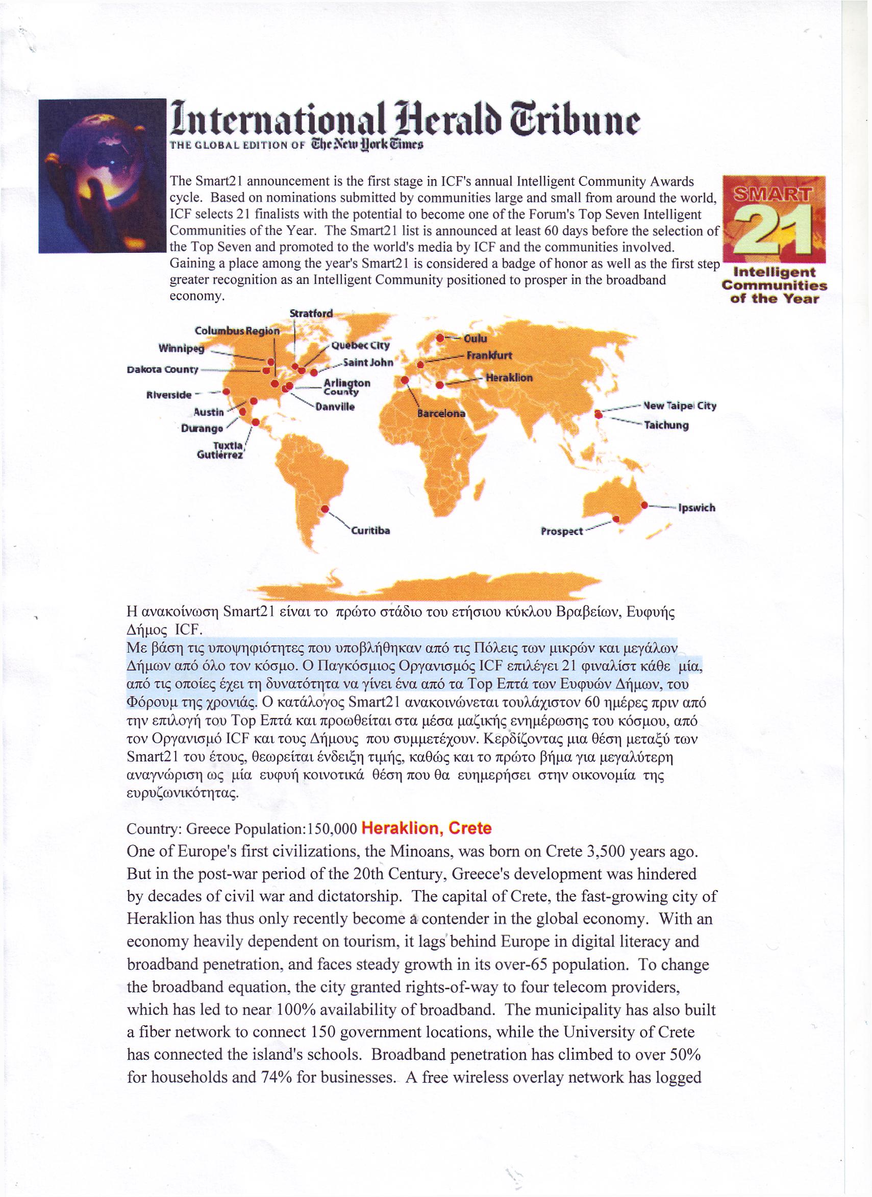 Τιμητική διάκριση του Δήμου Ηρακλείου στον Διεθνή Τύπο