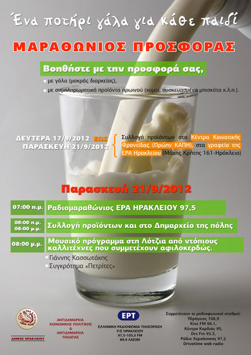 Σε συνεργασία με το Δήμο Ηρακλείου και τις Αντιδημαρχίες Κοινωνικής Πολιτικής και Παιδείας η ΕΡΑ Ηρακλείου προσπαθώντας να βελτιώσει την καθημερινότητα των παιδιών που έχουν ανάγκη, ενόψει της νέας σχολικής χρονιάς, διοργανώνει ραδιομαραθώνιο, την επόμενη Παρασκευή 21 Σεπτεμβρίου.