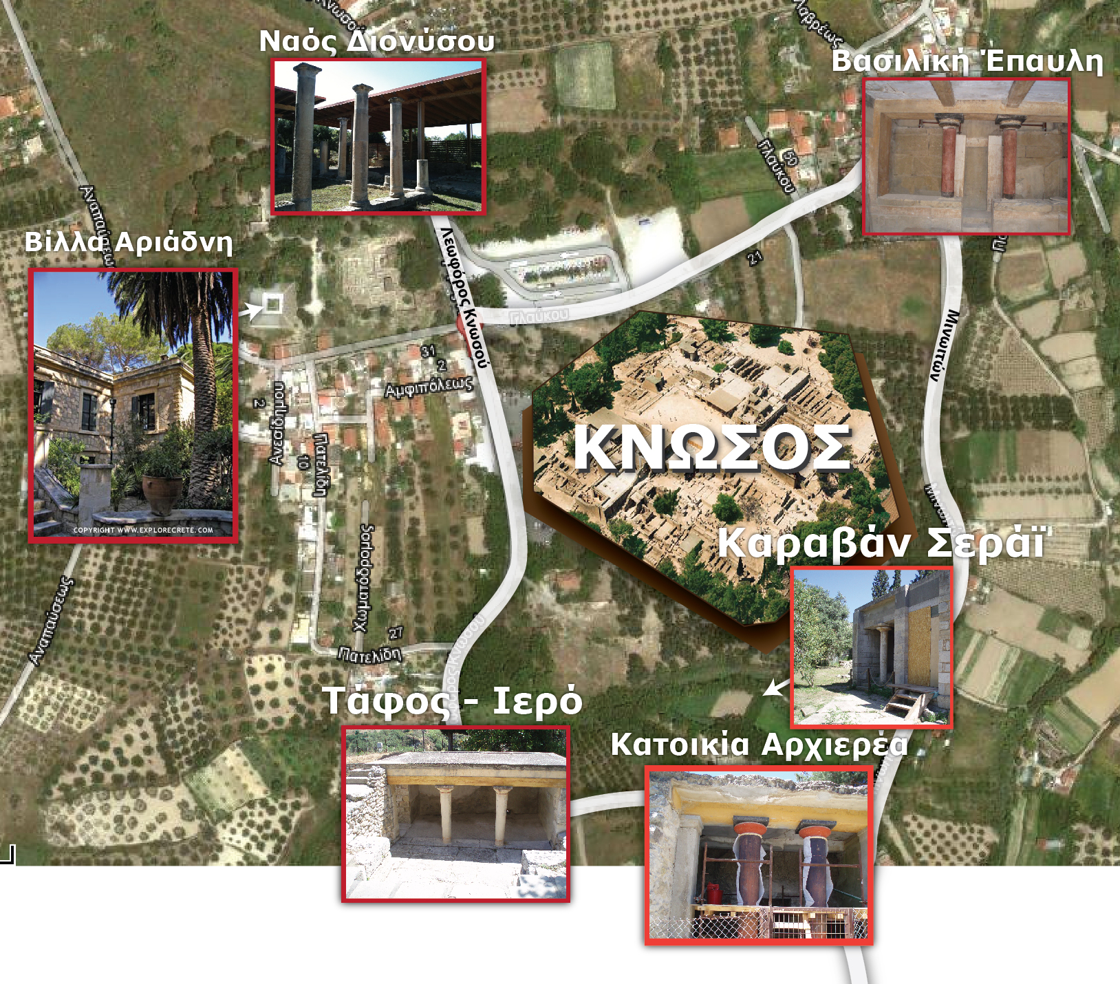 Εκτός από τη μεγάλη αρχαιολογική σημασία των μνημείων που περιβάλλουν το χώρο της Κνωσού, όπως η Βίλα Αριάδνη, η Βίλα Διονύσου, ο Τάφος - Ιερό, η Βασιλική Έπαυλη, η Κατοικία του Αρχιερέα, το Καραβάν Σαράϊ, κ.τ.λ. - άγνωστα εν πολλοίς στο ευρύ κοινό - και η χωροταξική τους κατανομή είναι τέτοια, τόνισαν οι εκπρόσωποι του ΥΠ.ΠΟ. και της ΕΑΧΑ, που όχι μόνο δεν δημιουργεί προβλήματα στη σύνδεσή τους με τον κυρίως Αρχαιολογικό Χώρο, αλλά αντίθετα προσφέρεται ιδιαίτερα για ελκυστικές περιπατητικές διαδρομές με ήπιες παρεμβάσεις, που συνάδουν με τη σπουδαιότητα και την όλη μορφή του χώρου.