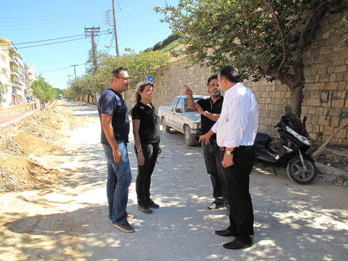 Ο κ. Κούρακης ενημερώθηκε από τον επιβλέποντα του έργου ότι, ήδη γίνονται οι καθαιρέσεις των παλαιών πεζοδρομίων, κατασκευάζονται τα υπόγεια καλώδια ηλεκτροφωτισμού ενώ ξεκίνησε και η κατασκευή του δικτύου ομβρίων.