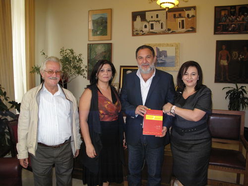 Το Δήμαρχο Ηρακλείου επισκέφθηκαν σήμερα οι κυρίες Αθ. Δρακούλη και Ζωγραφιστού-Βλαχάκη και ο κ. Ζαχαρίας Κραταράκης και του πρόσφεραν το βιβλίο: “Συνάντηση 2 Πολιτισμών” που επιμελήθηκαν, και τον ευχαρίστησαν για τη στήριξη του Δήμου.