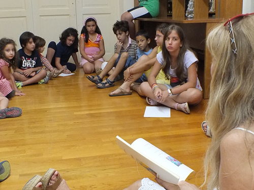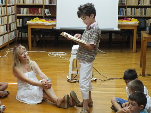 β) την Θεοδοσία  Αργυράκη-Ασαργιωτάκη εικαστικό  και λογοτέχνη, η οποία είχε στις αποσκευές της την απόχη της φαντασίας και της τέχνης, εκεί ανάμεσα στα βιβλία της γνώσης. Με την βοήθεια της τα παιδιά  ψαρέψαν «Ηλιοχρώματα» και  εξερεύνησαν τον ονειρικό  και τον δημιουργικό κόσμο του λόγου και της τέχνης ακολουθώντας την διαδρομή  της ανθρώπινης πορείας  από τους προϊστορικούς χρόνους μέχρι σήμερα. Τα παιδιά ζωγράφισαν και έγραψαν μια μικρή παραμυθένια ιστορία.