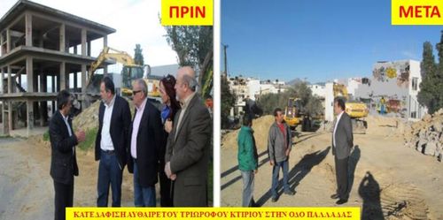 Να θυμίσουμε ότι πρόκειται για τη δεύτερη κατεδάφιση ακινήτου καθώς εφαρμόζεται πλήρως το Σχέδιο Πόλης στην οδό Παλλάδας η οποία είναι κάθετη στην Οδό Παπά Πέτρου Γαβαλά στο ύψος του Δημοτικού Σχολείου και η οποία διανοίγεται πλέον στο σύνολό της.