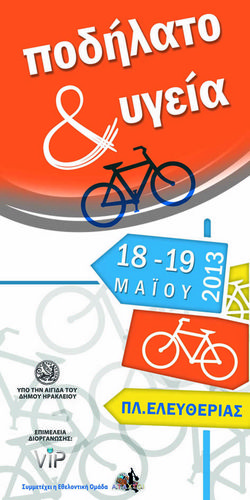 Με ιδιαίτερη χαρά, ο Δήμος Ηρακλείου σας καλεί σε μια εκδήλωση – γιορτή για το Ποδήλατο. Αυτό το Σαββατοκύριακο, από νωρίς το πρωί μέχρι αργά το απόγευμα ένα θεματικό πάρκο γύρω από το Ποδήλατο, θα έχει στηθεί στην Πλατεία Ελευθερίας με πολλές δράσεις.