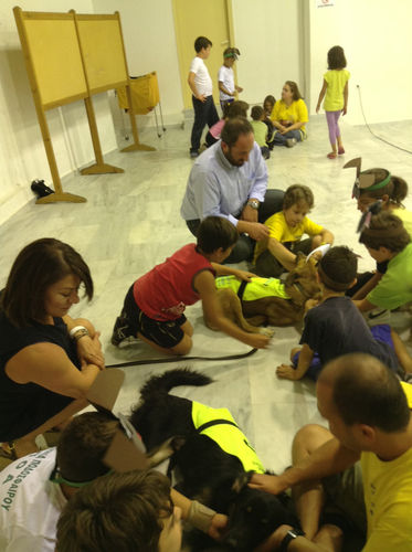 Κατά τη διάρκεια της επίσκεψής της, ο ομάδα της SAPT Hellas ενημερώνει σε θεωρητικό και πρακτικό επίπεδο τα παιδιά - και αυριανούς πολίτες της Ελλάδας - για την σωστή συμπεριφορά προς τους σκύλους (αδέσποτους ή δεσποζόμενους) και τα ευαισθητοποιεί σε σχέση με το πολύ καίριο πρόβλημα των αδέσποτων σκύλων(Πρόγραμμα «Εκστρατεία Ενημέρωσης»). Με την ολοκλήρωση της προφορικής ενημέρωσης , τα παιδιά έρχονται σε άμεση επαφή με τα εκπαιδευμένα σκυλιά παίζοντας μαζί τους και προσεγγίζοντάς τα, με τις οδηγίες και την επιτήρηση των εθελοντών της ομάδας.