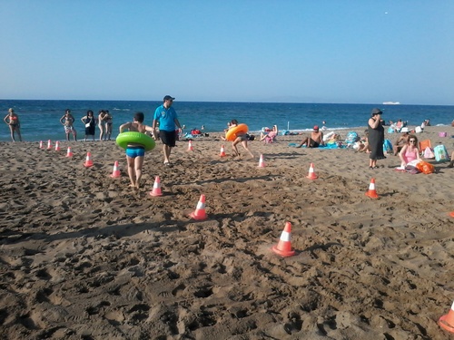 Με τις χαρούμενες φωνές των μικρών αθλητών, τα παιχνίδια άρχισαν με σωσιβιοδρομίες και τσουβαλοδρομίες, σλάλομ με μπάλες, κουβαδοδρομίες, καθώς και ομαδικά παιχνίδια, όπως beach soccer και διελκυστίνδα, στα οποία συμμετείχαν γονείς και παιδιά.