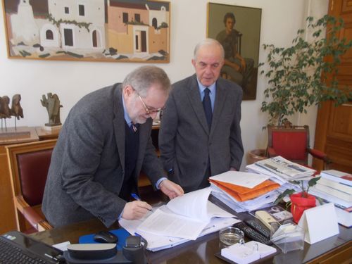 Υπογράφηκε σήμερα το μεσημέρι στο δημαρχείο Ηρακλείου η προγραμματική σύμβαση για τη μελέτη του παραλιακού μετώπου της πόλης, από το δήμαρχο, κ. Βασίλη Λαμπρινό και τον αντιπρόεδρο του ΙΤΕ και διευθυντή του Ινστιτούτου Υπολογιστικών Μαθηματικών, κ. Βασίλη Δουγαλή.