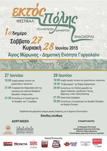 Το 1ο Διήμερο Φεστιβάλ ξεκινάει το Σάββατο 27 Ιουνίου και θα ολοκληρωθεί την Κυριακή 28 Ιουνίου 2015. Πρώτος σταθμός σε αυτή την προσπάθεια είναι ο Άγιος Μύρωνας (Δημοτική Ενότητα Γοργολαΐνη) ενώ αντίστοιχες εκδηλώσεις θα γίνουν στις Δημοτικές Ενότητες Παλιανής και Τεμένους, που διαθέτουν ένα ισχυρό και έμπειρο ανθρώπινο δυναμικό, σημαντικούς φυσικούς πόρους αλλά και μια σπουδαία πολιτισμική κληρονομιά.