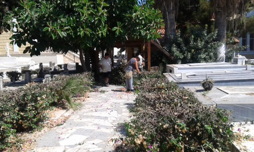 Στο χώρο του κοιμητηρίου βρέθηκε σήμερα και ο αρμόδιος Αντιδήμαρχος Πρασίνου και Περιβάλλοντος κ. Πέτρος Ινιωτάκης προκειμένου να παρακολουθήσει από κοντά τις εργασίες αποκατάστασης του χώρου.