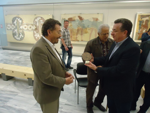 Τα γυρίσματα της ταινίας στο αρχαιολογικό μουσείο Ηρακλείου, είχε παρακολουθήσει πριν λίγους μήνες ο Περιφερειάρχης Κρήτης Σταύρος Αρναουτάκης ο οποίος μίλησε με το σκηνοθέτη-σεναριογράφο Φώτη Κωνσταντινίδη αλλά και τον διεθνούς φήμης Άγγλο πρωταγωνιστή Robert Powell . Ο Άγγλος ηθοποιός είχε δηλώσει ευτυχισμένος που βρίσκεται στην Κρήτη και που βιώνει και κινηματογραφικά την ιστορία, τον πολιτισμό, την μυθολογία της Κρήτης αλλά και την φιλοξενία των Κρητικών. Από την πλευρά του ο Περιφερειάρχης Σταύρος Αρναουτάκης ευρισκόμενος στα γυρίσματα στο αρχαιολογικό μουσείο, δήλωσε ότι, «είναι σημαντικό το γεγονός για εμάς να γυρίζεται μια ταινία-ντοκιματέρ που αφιερώνεται αποκλειστικά στην Κρήτη όπου θα προβληθεί διεθνώς η ιστορία, ο πολιτισμός, η αρχαιολογία, ο τουρισμός, η φύση του νησιού. Επίσης δεν περνά απαρατήρητο το γεγονός ότι πρωταγωνιστής είναι ένας ηθοποιός που άφησε ιστορία στον κινηματογράφο με την μοναδική ερμηνεία του ως Ιησούς Χριστός στην ταινία του Φράνκο Τζεφιρέλι».