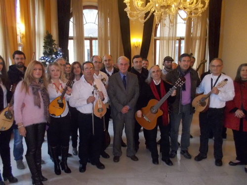 Τα κάλαντα της Πρωτοχρονιάς συνοδεία παραδοσιακών εγχόρδων οργάνων έψαλλαν στο Δήμαρχο Ηρακλείου κ.Βασίλη Λαμπρινό και Αντιδημάρχους που τους υποδέχτηκαν στη Λότζια, τα μέλη του συλλόγου Νυκτών & Τοξοτών Οργάνων Κρήτης.