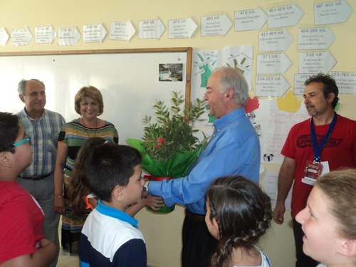 Ο κ. Λαμπρινός μίλησε στους μαθητές για την αναγκαιότητα της ανακύκλωσης, για τη σπουδαιότητα του πρασίνου και τη σημασία της προσβασιμότητας. Στο τέλος του … μαθήματος τα παιδιά έδωσαν στο Δήμαρχο δώρο μία ελιά που θα φυτευτεί στο πάρκο Γεωργιάδη.