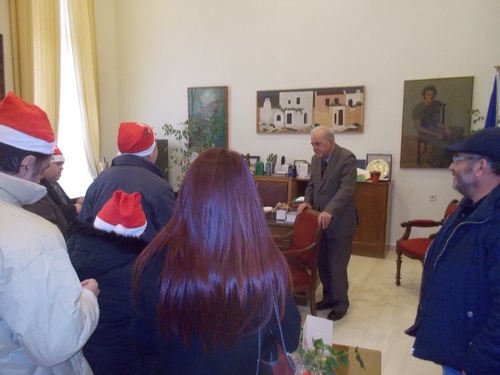 Τα κάλαντα των Χριστουγέννων έψαλαν σήμερα στο Δήμαρχο Ηρακλείου κ. Βασίλη Λαμπρινό τα παιδιά του Ειδικού Κέντρου «Ο Άγιος Σπυρίδων» μαζί με τους εκπαιδευτικούς τους.