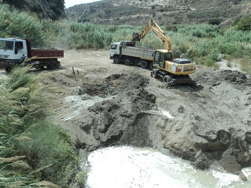 Οι εργασίες που πραγματοποιούνται περιλαμβάνουν την απομάκρυνση ποσοτήτων χώματος ,καλαμιών και άλλων υλικών από το φράγμα ανάσχεσης και τις όχθες, ώστε σε περίπτωση δυνατής νεροποντής τα ύδατα χωρίς εμπόδια να ακολουθούν τη φυσική ροή του ποταμού.