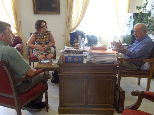 Στο τέλος της συνάντησης αντάλλαξαν και αναμνηστικά δώρα με τον κ. Λαμπρινό να τους προσφέρει τον τόμο «Η Λέσχη των Ευγενών του Χάνδακα» της αρχαιολόγου Λιάνας Σταρίδα.