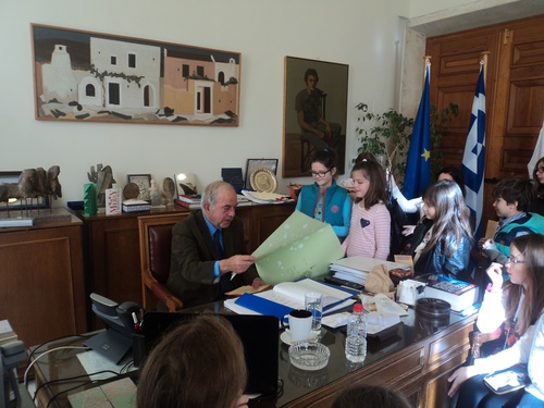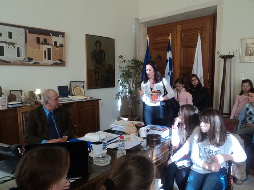 Τα παιδιά του Ευρωπαϊκού Σχολείου Ηρακλείου στο Δήμαρχο Ηρακλείου Β. Λαμπρινό
