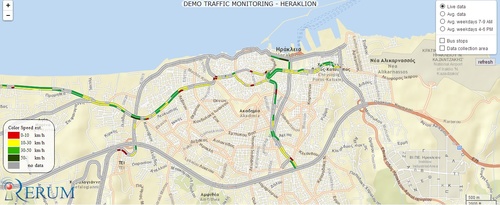 Διατίθεται στο κοινό η νέα εφαρμογή μέτρησης και απεικόνισης κυκλοφοριακής κίνησης για τους δρόμους του Ηρακλείου με τη χρήση πληροφοριών από κινητά τηλέφωνα. Η εφαρμογή είναι διαθέσιμη για συσκευές με λειτουργικό Android και οι δημότες μπορούν να την εγκαταστήσουν μέσα από το Google Play με το όνομα RERUM Traffic Car.