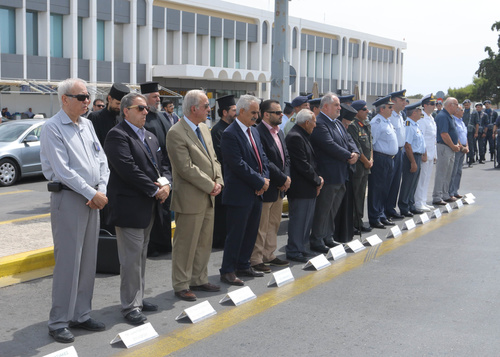 Στην τιμητική εκδήλωση στο αεροδρόμιο Ηρακλείου στεφάνι κατέθεσαν ο αναπληρωτής Υπουργός Έρευνας και Καινοτομίας Κώστας Φωτάκης που εκπροσώπησε την Κυβέρνηση, ο Αντιπεριφερειάρχης Ηρακλείου Ευριπίδης Κουκιαδάκης, ο Δήμαρχος Ηρακλείου Βασίλης Λαμπρινός και εκπρόσωποι των στρατιωτικών αρχών.