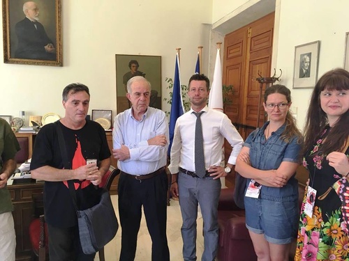 Ο Δήμαρχος είχε την ευκαιρία να συζητήσει με τον Περιφερειακό Σύμβουλο κ. Ζαχαρία Κεφαλογιάννη, τον σκηνοθέτη κ. Αντώνη Διαμαντή και την υπεύθυνη επικοινωνίας του φεστιβάλ Anna – Marie Houe για τις πολλές και ενδιαφέρουσες εκδηλώσεις που θα πραγματοποιηθούν στο Ηράκλειο από την 1η έως και τις 4η Σεπτεμβρίου, ενώ τόνισε εκ νέου τη σημασία που δίνει ο Δήμος Ηρακλείου στον πολιτισμό.