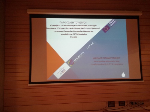 Παρουσιάστηκε το απόγευμα της Τετάρτης 3 Αυγούστου στο Μικρό Θέατρο του Πολιτιστικού Κέντρου, παρουσία και του Δημάρχου Ηρακλείου κ. Βασίλη Λαμπρινού, το νέο Κεντρικό Σύστημα Τηλεποπτείας Εγκαταστάσεων Ύδρευσης της ΔΕΥΑΗ. Πρόκειται για ένα έργο τελευταίας τεχνολογίας που χρηματοδοτήθηκε από το πρόγραμμα ΕΠΠΕΡΑΑ και το οποίο δίνει τη δυνατότητα στην Εταιρεία να ελέγχει μέσω τηλεχειρισμού – τηλελέγχου τα εξωτερικά υδραγωγεία της και να μειώνει τις διαρροές στα δίκτυα της.