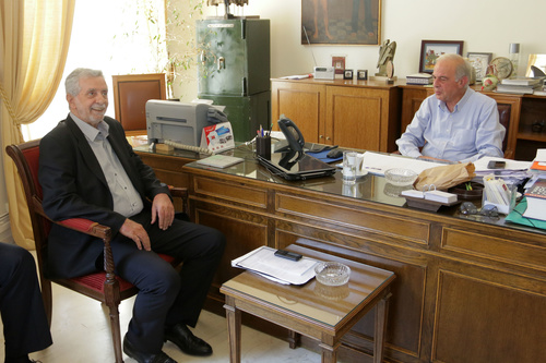 Με τον Δήμαρχο Ηρακλείου κ. Βασίλη Λαμπρινό συναντήθηκε σήμερα στη Λότζια ο Υπουργός Εμπορικής Ναυτιλίας και Νησιωτικής Πολιτικής κ. Θεόδωρος Δρίτσας συνοδευόμενος από τον Αρχηγό του Λιμενικού Σώματος, Αντιναύαρχο κ. Ράπτη Σταμάτη, τους Βουλευτές κ. Σωκράτη Βαρδάκη και κ. Νίκο Ηγουμενίδη, τον πρόεδρο του ΟΛΗ κ. Απόλλωνα Φιλιππή και τον Λιμενάρχη Ηρακλείου κ. Σαϊτάκη Δημήτρη.