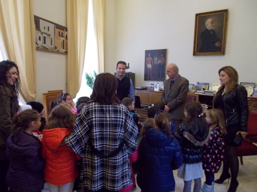 Ο Δήμαρχος, τους ευχήθηκε χρόνια πολλά και καλά Χριστούγεννα, ενώ τα παιδιά του πρόσφεραν Χριστουγεννιάτικες κατασκευές που έφτιαξαν στο σχολείο τους.