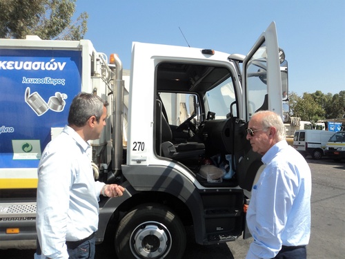Την ευκαιρία να δει από κοντά το καινούργιο απορριμματοφόρο, το οποίο αναμένεται να τεθεί σε κυκλοφορία την επόμενη εβδομάδα, είχε ο Δήμαρχος Ηρακλείου κ. Βασίλης Λαμπρινός κατά την διάρκεια της επίσκεψής του στις εγκαταστάσεις της Υπηρεσίας Καθαριότητας και Ανακύκλωσης στην Νέα Αλικαρνασσό.